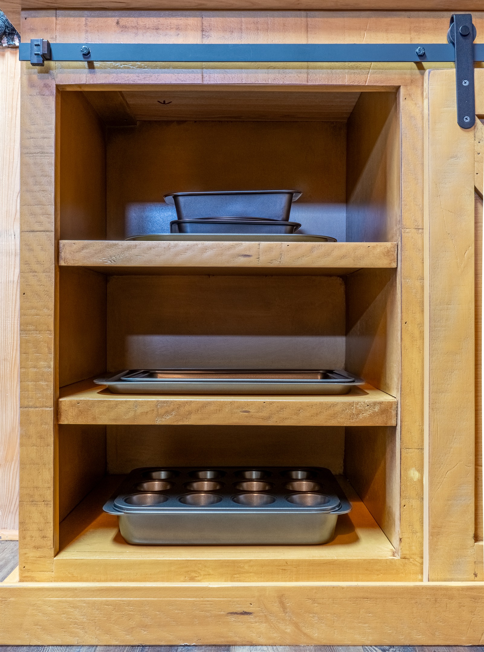 Whip up delicious meals in the thoughtfully designed kitchen, featuring a 5-burner induction cooktop, a versatile 3-in-1 microwave/convection oven/air fryer, a countertop roaster oven, and a commercial-grade pizza oven—perfect for everything from homemade pizzas to a full Thanksgiving turkey! While the cabin’s handcrafted design didn’t allow for a full-size conventional oven, these appliances offer all the flexibility you’ll need. Fully stocked and ready for entertaining, this kitchen is a chef’s rustic dream come true.